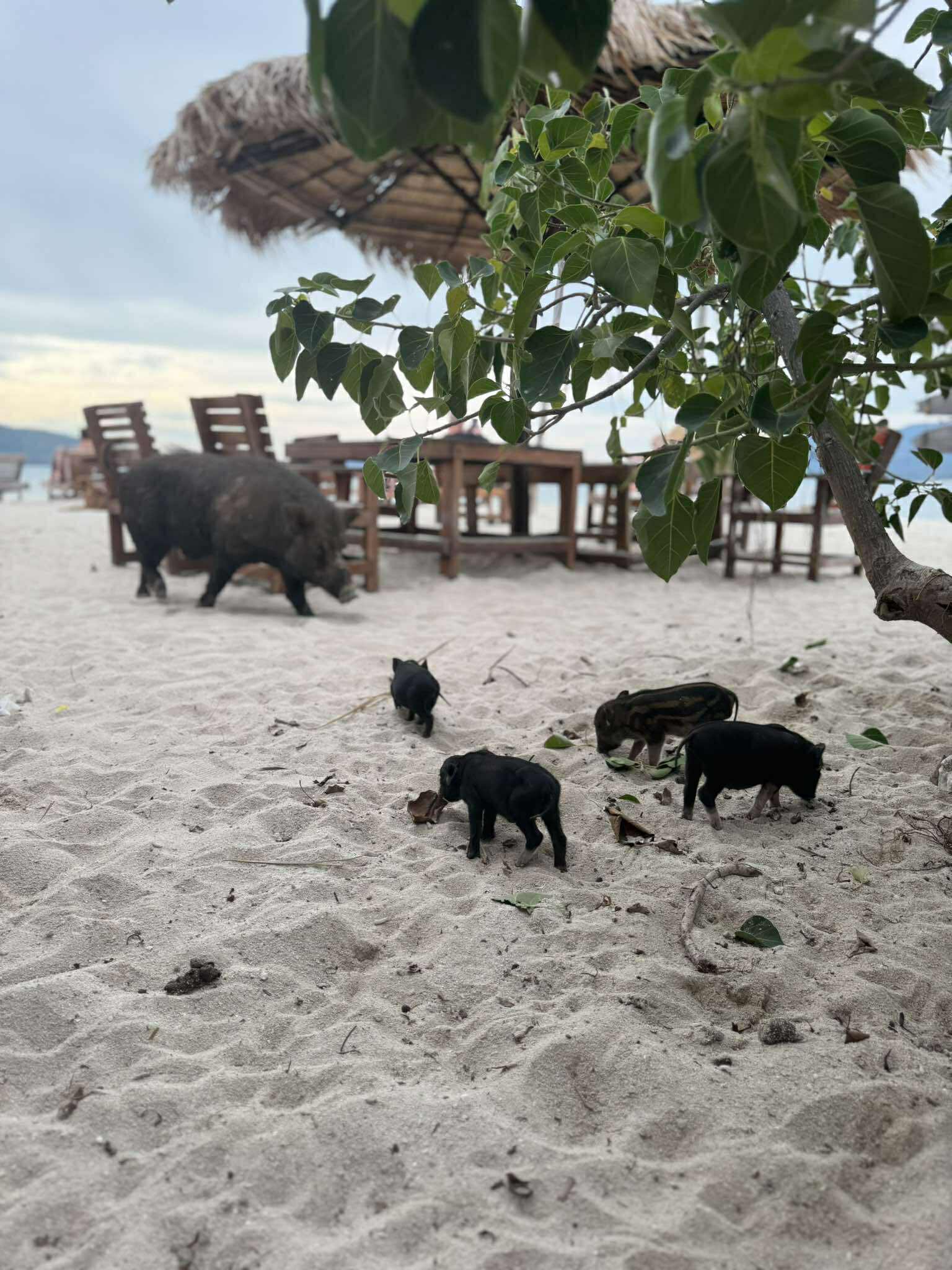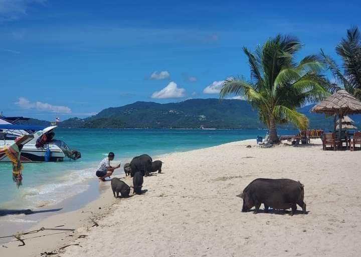 Yes! The pigs on Koh Madsum are friendly and accustomed to visitors. You can walk on the beach with them, feed them, and even swim alongside them in the shallow water.